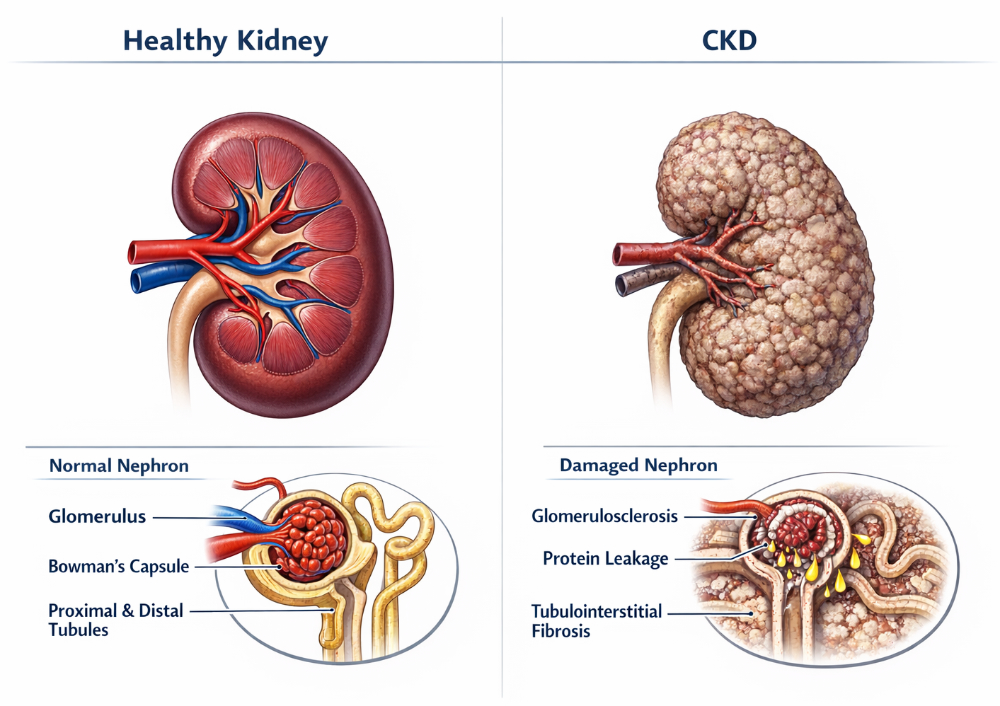 • Renal Fibrosis: The immune system tries to “repair” the kidney by laying down scar tissue, which unfortunately further destroys the remaining healthy nephrons.